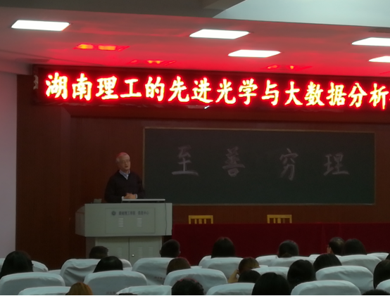 校园网讯 2017年11月16日,物电学院在六号楼学术报告厅开展了关于“湖南理工的先进光学与大数据分析研究”的学术讲座,本次讲座由美国东卡罗来纳州立大学终身教授、湖南理工学院“南湖学者”胡新华教授主讲,物电学院党总支书记罗文华主持,15级全体学生聆听了讲座。