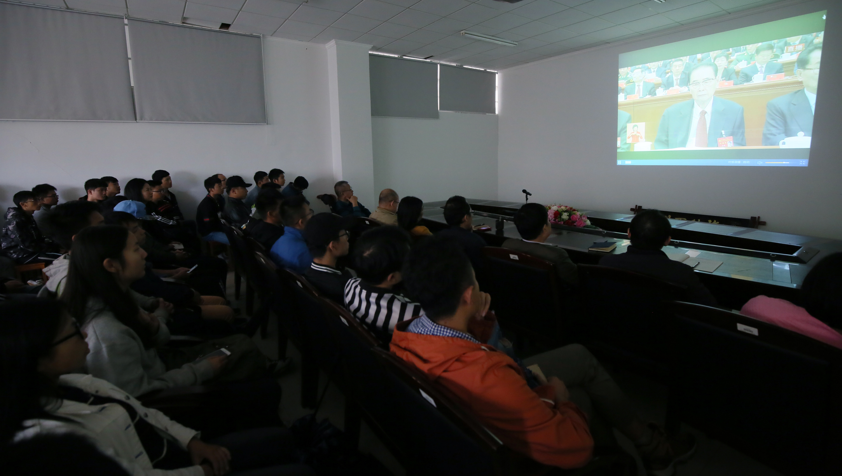 习近平代表中国共产党第十八届中央委员会向大会作报告。我校师生代表认真聆听大会直播,不时在笔记本上做记录,并纷纷表示将会学习贯彻习总书记讲话精神,不忘初心,继续前行,为实现中华民族伟大复兴而努力。